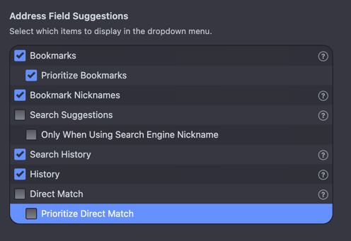 Direct match, in my opinion, is scummy from Vivaldi who says they are a privacy respecting browser.