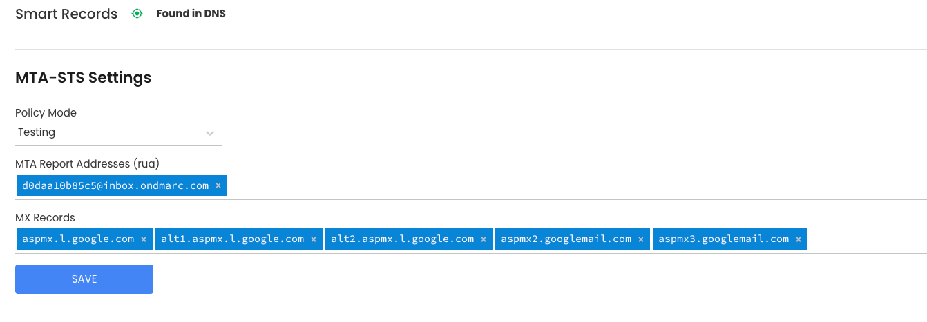 If your domain is already in OnDmarc you can skip to create MTA-STS records